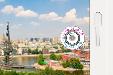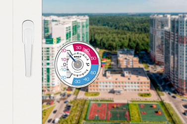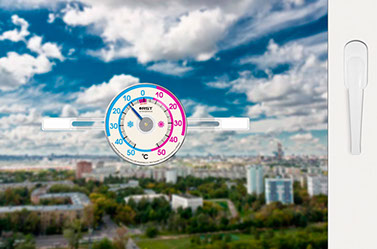 В биметаллических стрелочных термометрах, устанавливаемых за окном, для крепления на стекло или раму использован усиленный всепогодный  двойной скотч повышенной надежности.