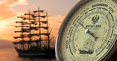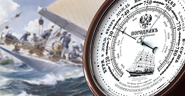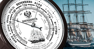 Барометры с изображением парусника "Крузенштерн", Российского герба и морской атрибутики.