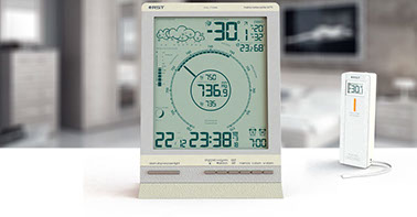 Перечень основных функций домашней метеостанции: высокочувствительный цифровой барометр с классическим циферблатом • система автоматического изменения масштаба шкалы барометра в случае, если давление будет ниже или выше указанной на шкале • анимированный прогноз погоды • дифференциальный барометр с технологией air pressure Ctrl 0.25 показывает в графическом виде малейшие изменения атмосферного давления за прошедшие 3 часа • радиодатчик RST02252 с возможностью приёма сигналов точного времени rcc DCF77.5 • беспроводная передача данных на 30-50 метров • автоматический пересчёт времени и даты согласно UTC/GMT (по Гринвичу) • система rcc77.5 UTC/GMT для автоматической синхронизации точного времени и даты (год, м есяц, число) по радиосигналам точного времени * • автоматический перевод с зимнего на летнее время и обратно, система DST (для РФ по умолчанию отклю чена, Пользователь может подключить в случае необходимости) • температура воздуха в помещении и за окном, полученная от радиодатчиков (макс. 3) • влажность воздуха в помещении • технология lo-hi Ctrl определение и отображение на дисплее минимальной и максимальной температур за текущие сутки • система предупреждения образования гололёда на дорогах ice alert • индикаторы тенденций изменения температур, влажности и а тмосферного давления • цифровая семицветная подсветка дисплея • элегантный "кожаный" корпус с хромированными кнопками • график изменения атмосферного давления за 36 часов • анимированный лунный календарь с указанием силы приливов и отливов • система “Intelligent alarm” (разумный будильник): “workday alarm” Вас разбудит только по рабочим дням недели и “single alarm” разбудит в указанное время • календарь с указанием номера недели • язык: 5 языков (английский, немецкий, французский, итальянский, русский) • устанавливается на столе и имеет настенный крепёж .