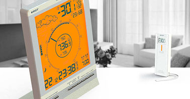 Метеостанции отображают анимированный прогноз погоды. Корпуса моделей выполнены в современном технологичном стиле из текстурного пластика с хромированными кнопками.