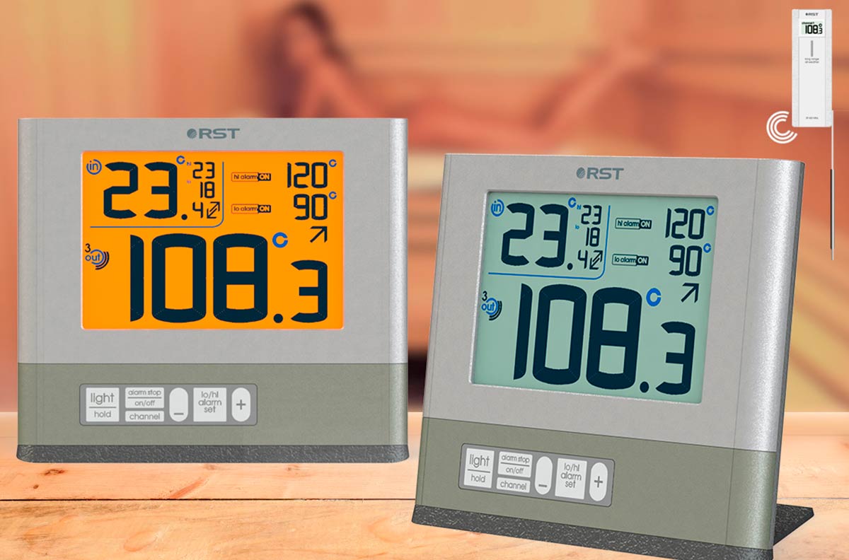 Термометр для бани и сауны включает выносной высокотемпературный радиодатчик, благодаря чему вы можете контролировать температуру в парной удаленно. При превышении или уменьшении заданных температур сработает звуковой сигнал.