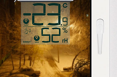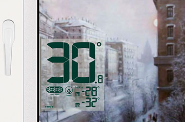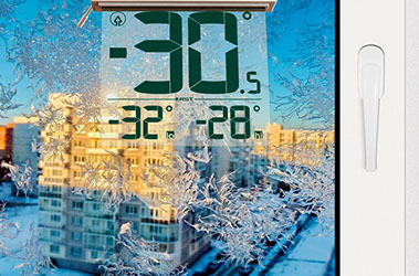 Прозрачные дисплеи оконных термометров оснащены антибликовым покрытием. Контрастные крупные цифры хорошо видны как в яркую солнечную, так и в пасмурную погоду и при недостатке освещения за окном.