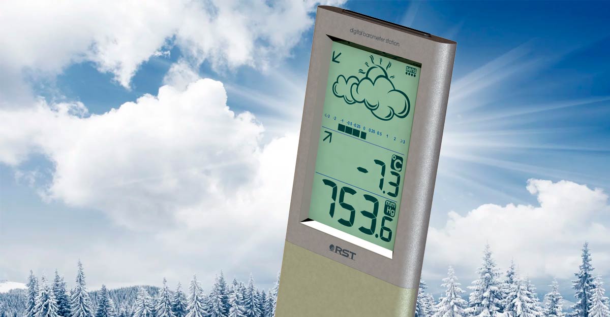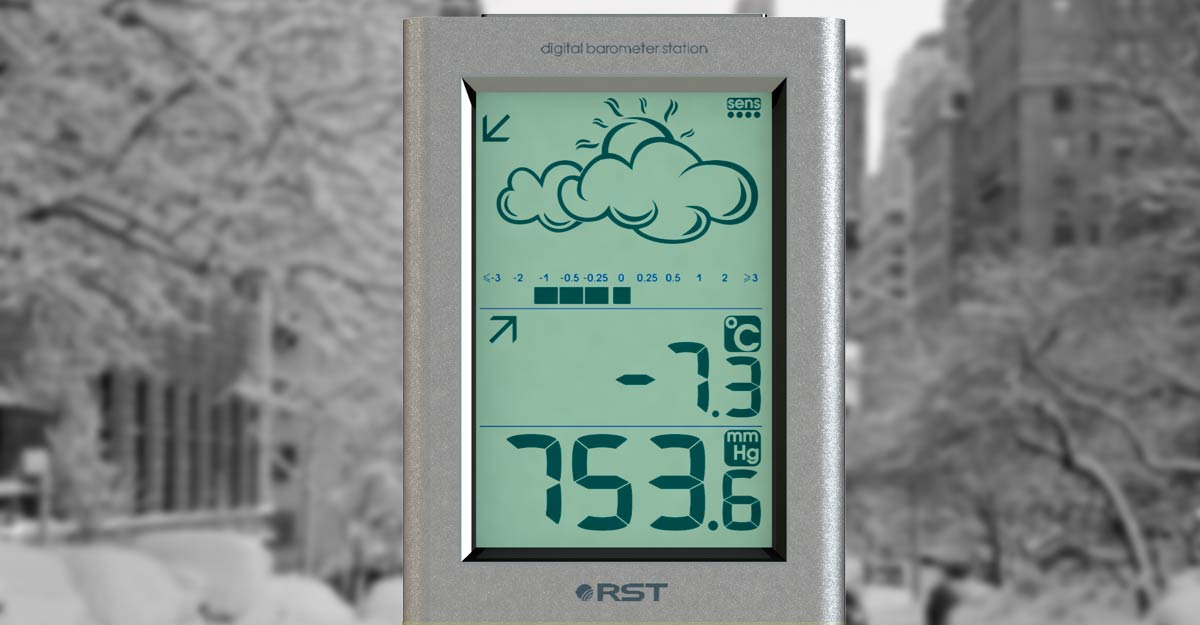 На крупном дисплее домашней метеостанции Вы найдете значения атмосферного давления в миллиметрах ртутного столба, прогноз погоды на следующие сутки, температуру воздуха в помещении, график тенденции изменения давления.